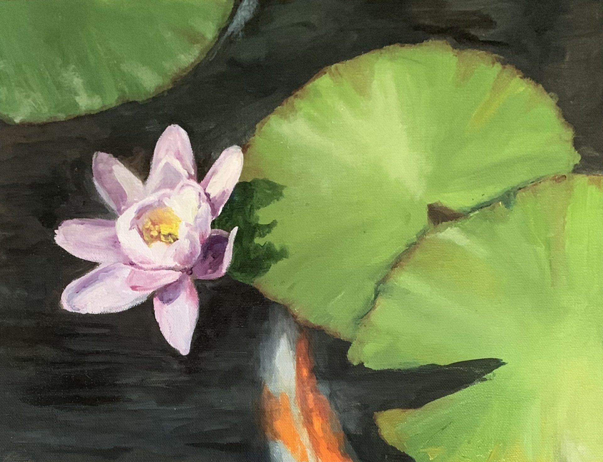 Here’s what’s sitting on my easel right now....these fish have been swimming around in my head for months and I’m glad to be getting them out! Should be fun to add the lily pads in tomorrow ☺️ #koi #koifish #koipond #scartist #southcarolinaartist #artgalleryonpendletonsquare #oilpainting #koipainting